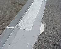 4. Die Flächenränder sowie um die Auf- oder Einbauten herum die Gewebestreifen mit Flüssigkunststoff verkleben: